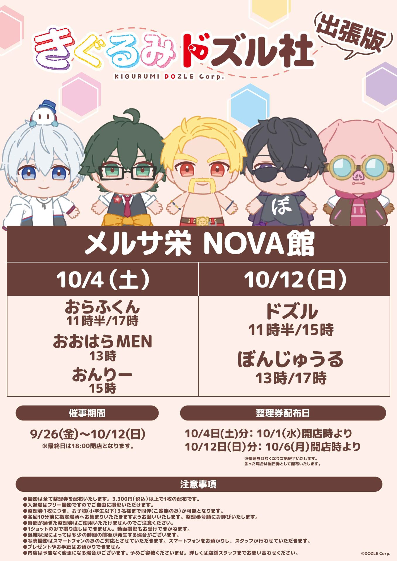 10/12(日) ドズル 11時半/15時