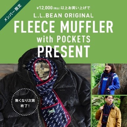 税込み12,000円以上お買上げの方にフリース・マフラー・ウィズ・ポケットをプレゼント!